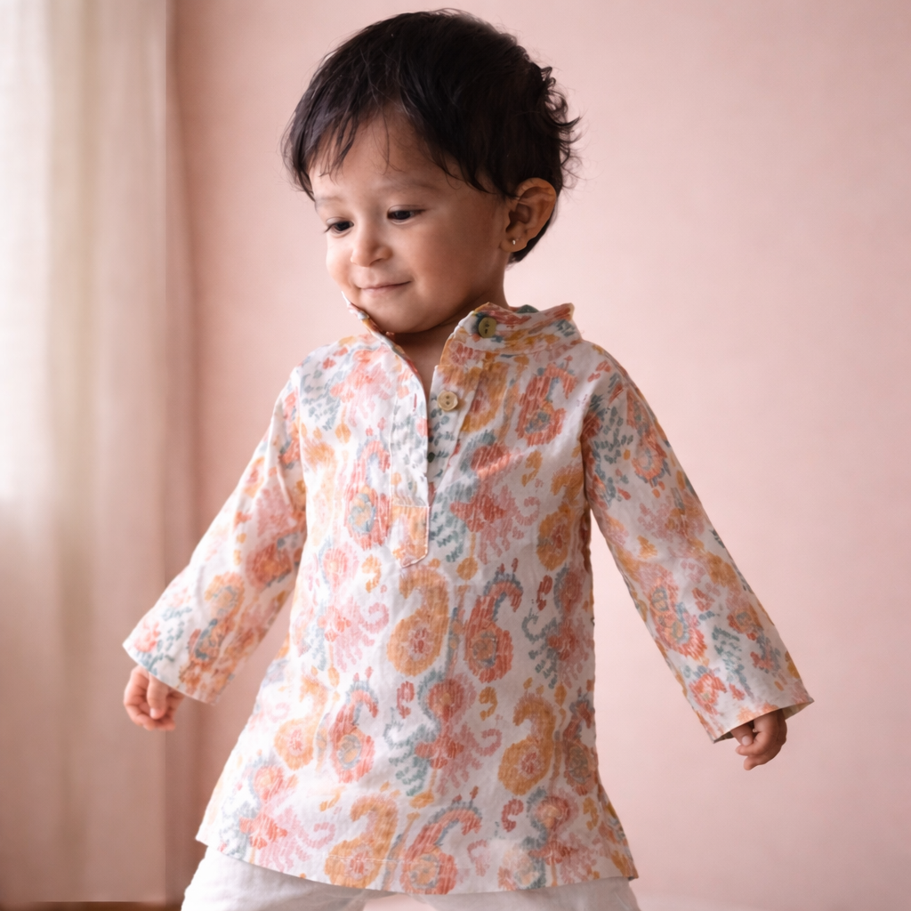 The print is beautifully detailed and feels rooted in tradition, yet light enough for everyday wear. Dhruv looked effortlessly elegant, and the fabric stayed comfortable throughout the day. It’s rare to find Indian wear that feels this refined and easy.