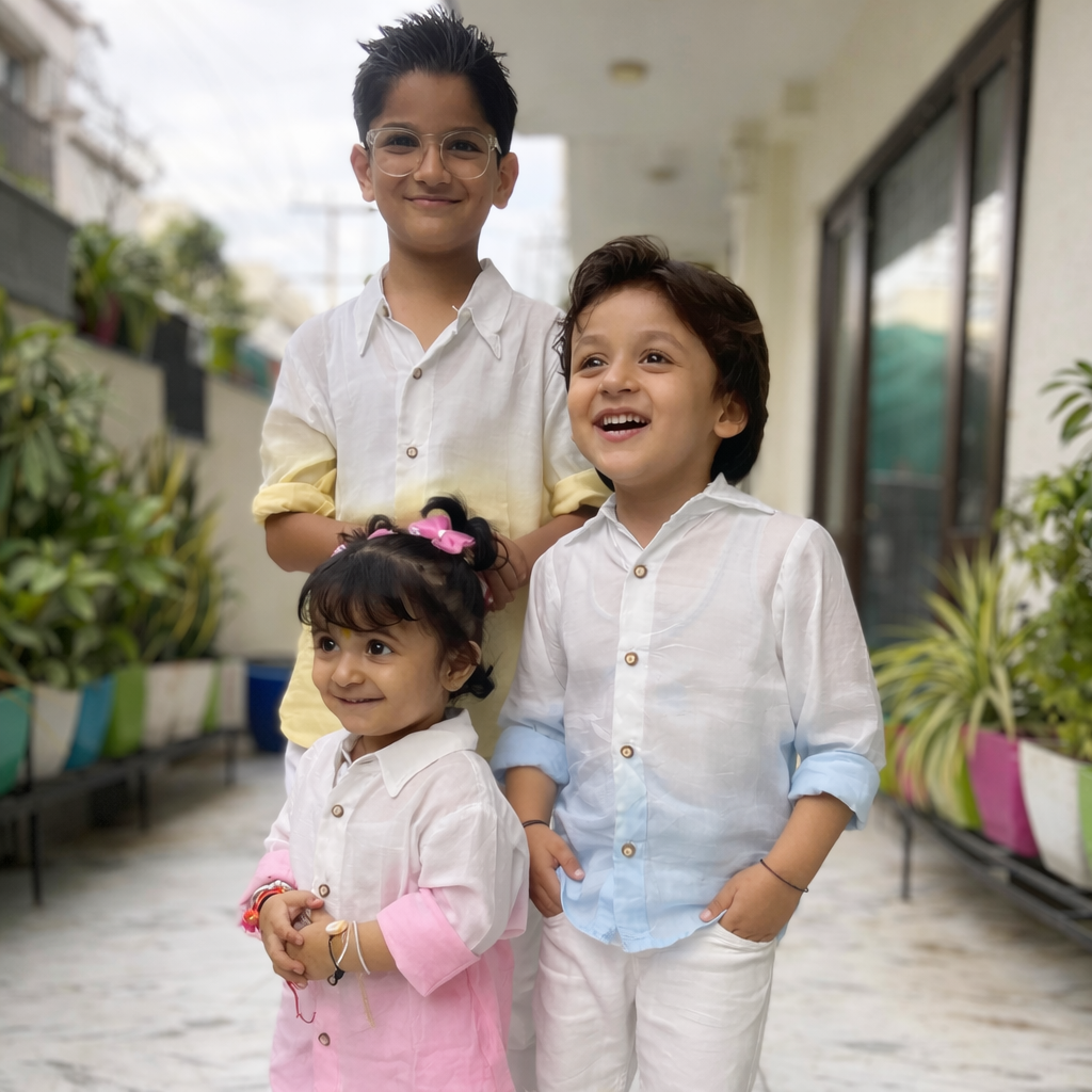 Dressing the children together felt effortless. The colours are subtle, the fabric is comfortable, and each piece holds its own personality. It’s rare to find coordinated outfits that still feel refined and easy.